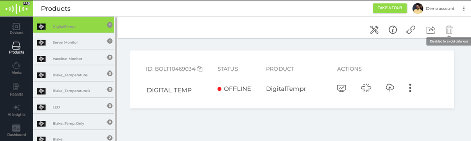 Initially, the Products section in Bolt Cloud was primarily used by students for learning and experimentation. However, as our platform has grown, enterprise customers now rely on it for Temperature and Humidity Monitoring, Negative Temperature Monitoring in cold storage, server rooms, and other critical applications.